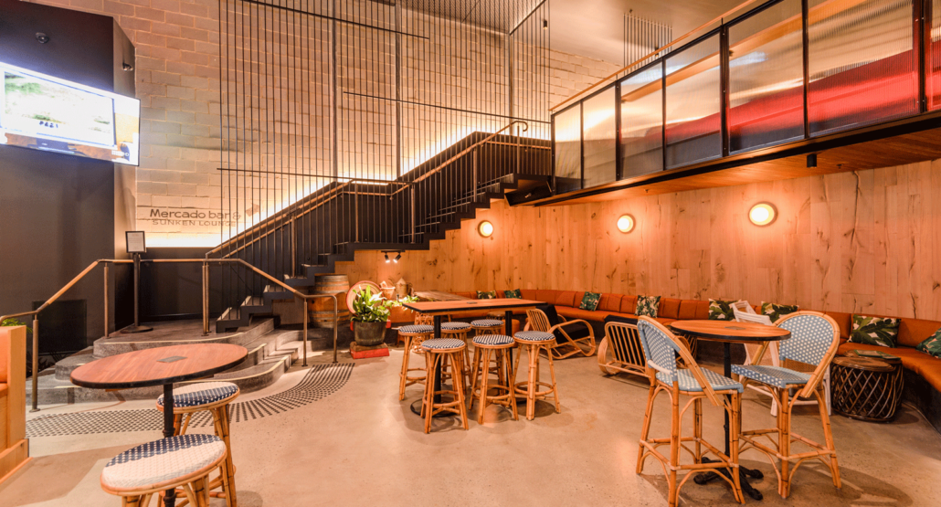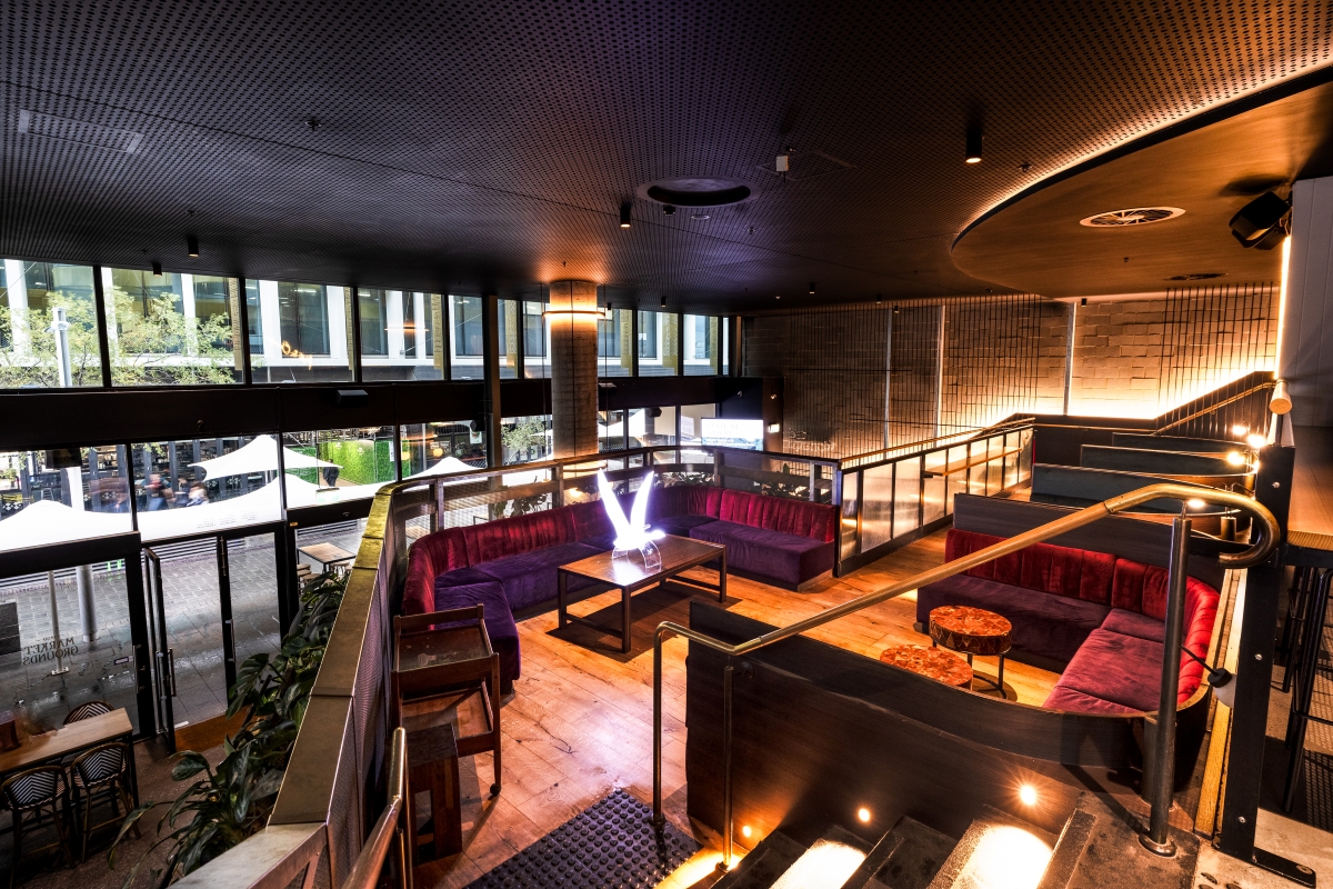 Suitable exclusively for groups of up to 25 and overlooking the Market Bar from our upper-level sunken lounge.